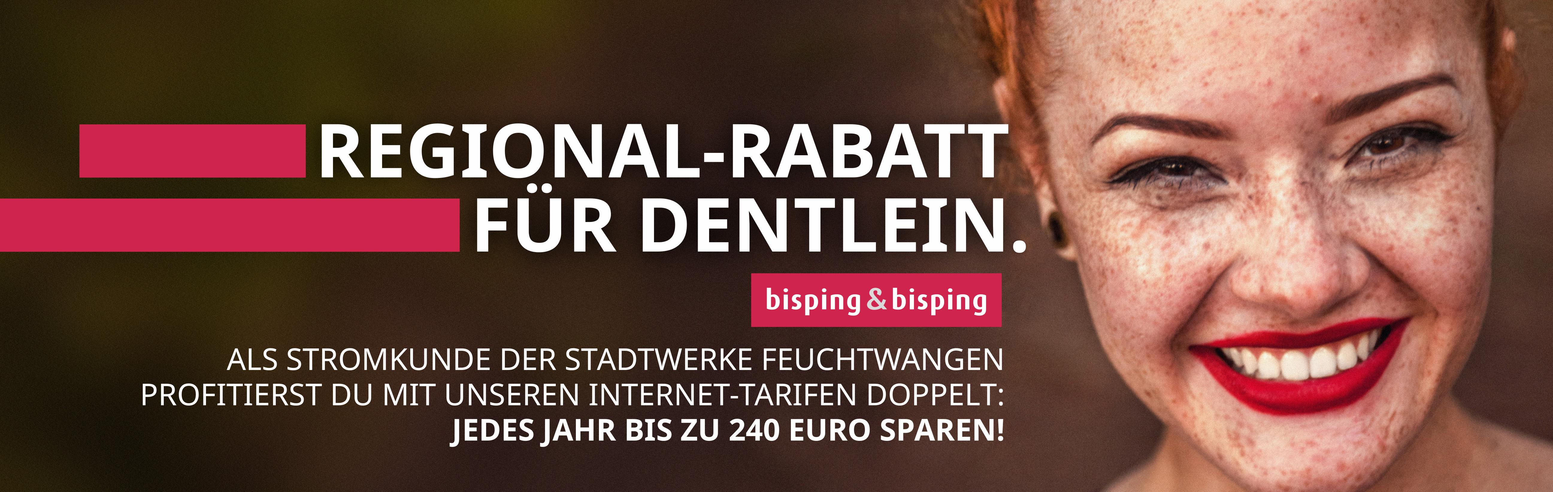 Entscheide Dich konsequent für regionale Power und profitiere jetzt doppelt: Als Glasfaser-Internetkunde von bisping & bisping und Stromkunde der stadtWERKE Feuchtwangen sicherst Du Dir einen Regional-Rabatt – bis zu 240 € pro Jahr.